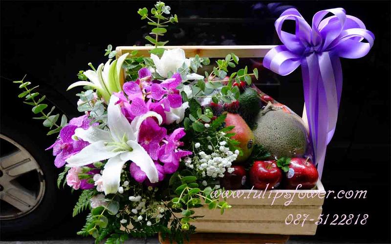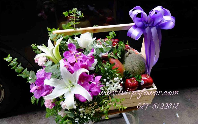 ขอสงวนการเปลี่ยนสี หรือวัสดุที่ห่อหุ้ม หรือดอกไม้ ตามแต่ฤดูกาล ของวัสดุนั้น โดยทางร้านจะแจ้งให้ทราบล่วงหน้าก่อนมีการจัดกระเช้าผลไม้