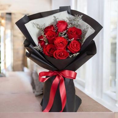 ช่อดอกกุหลาบสีแดง 20 ดอก ห่อสีขาว โบว์สีดำ